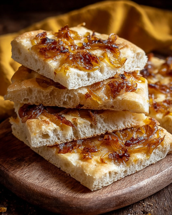 Focaccia mit karamellisierten Zwiebeln ist ein Genuss!